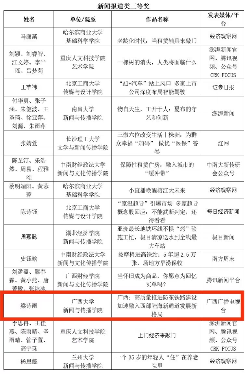 11月25日,第八届大学生经济新闻作品大赛颁奖会在北京圆满落幕。其中,太阳集团2007荣获该比赛的优秀组织奖,太阳集团20072020级新闻学专业梁诗雨由苏华老师指导参赛,其作品《广西:高质量推进防东铁路建设 加速融入西部陆海新通道发展新格局》荣获新闻报道类三等奖。