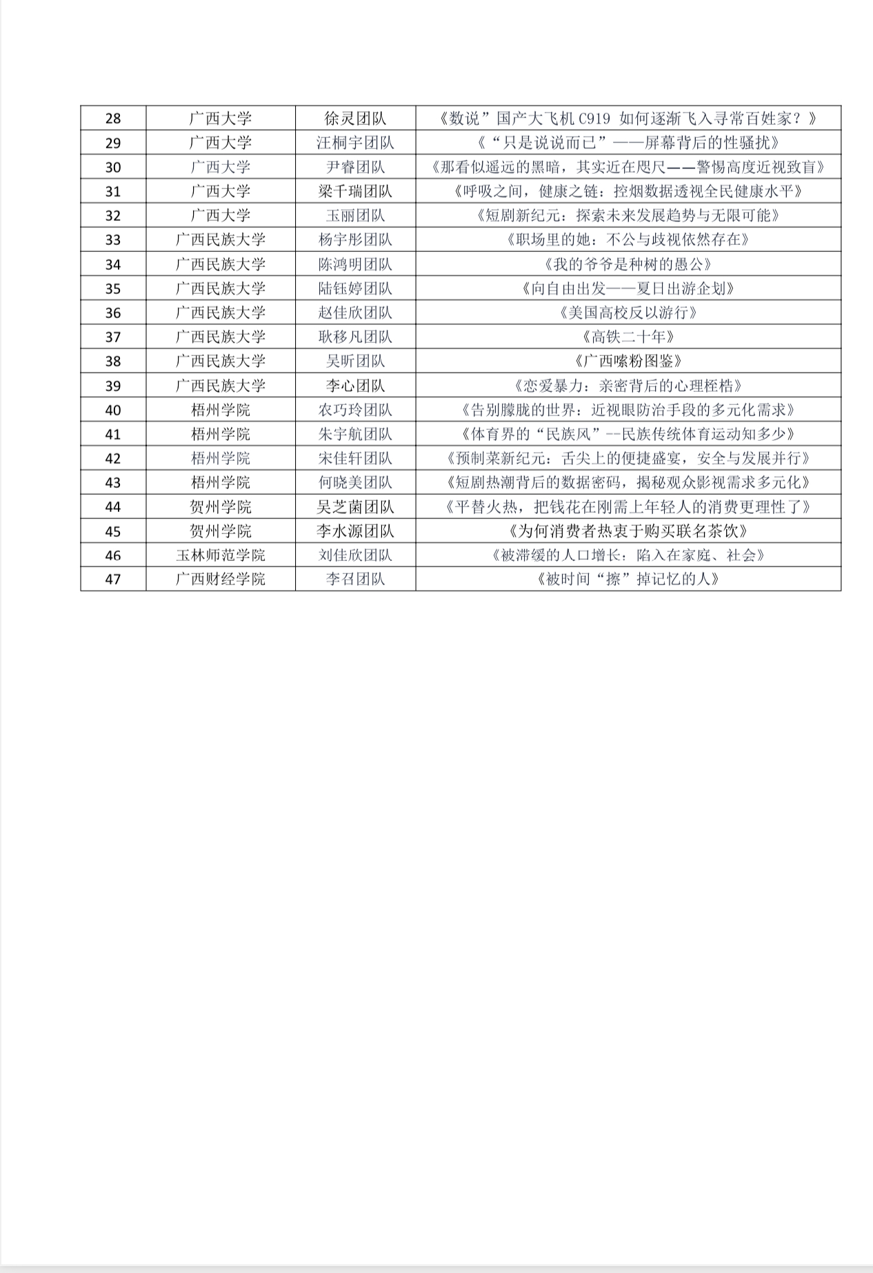 第九届中国数据新闻大赛广西壮族自治区区赛报名名单公示