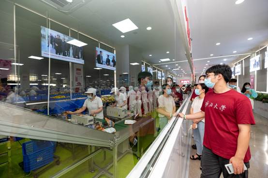 随后,实践队参观了企业的螺蛳粉生产车间、食品包装流水线以及螺蛳粉营销直播间,全面了解螺蛳粉的加工、营销全过程。
