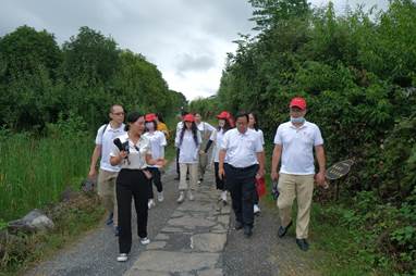 桂北地区三条古道中的全灌古道与湘桂古道在全州古岭头交汇,这两条两千年多前的古道石板路是当年长征红军和党中央走过的路。为缅怀和感受中央红军长征时的艰难与无畏,师生一行来到湘桂古道的全州段,沿着先烈足迹,在曾经洒下红军战士鲜血的石子路上,开始了近两个小时的徒步体验,最后来到曾经的湘江战役的战场——古岭头村,感受当时的历史厚度。