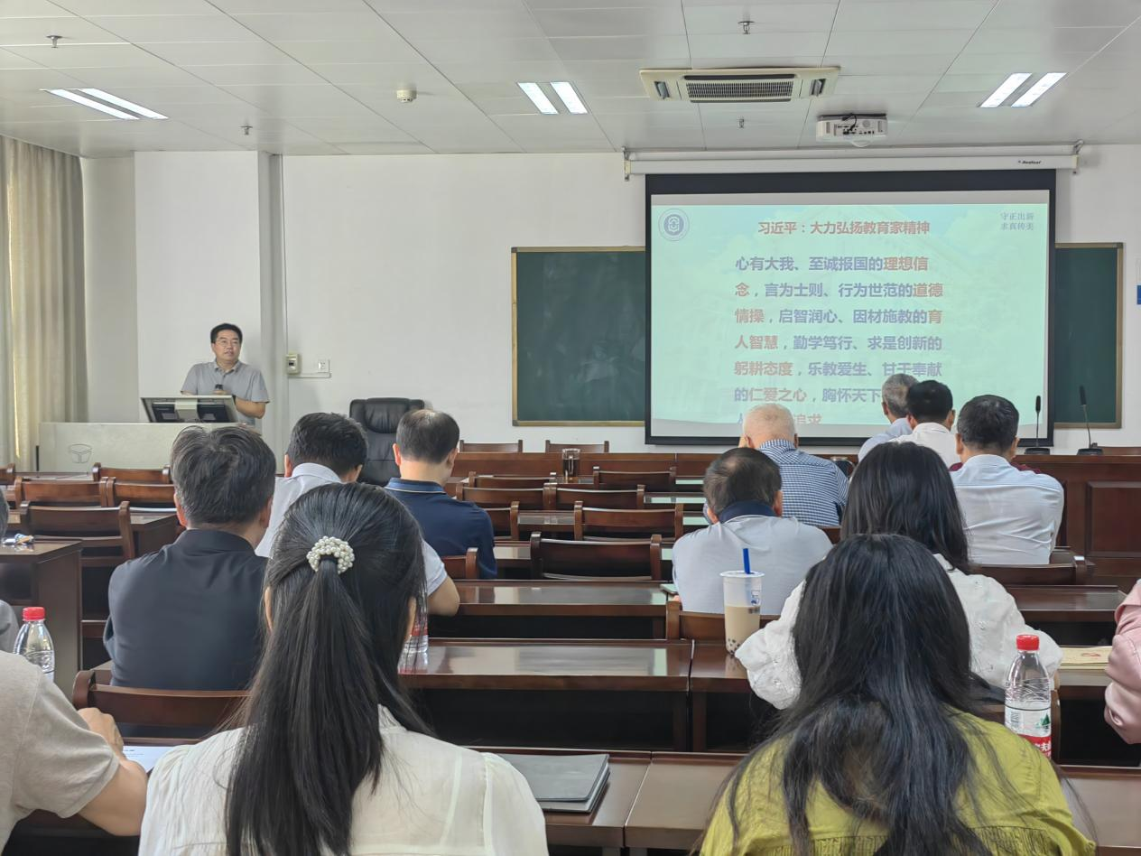 会上,院党委书记银健对学习领会贯彻近期习近平总书记致信出席全国优秀教师代表座谈会,大力弘扬教育家精神、习近平总书记给东北大学全体师生的回信、习近平总书记《扎实推动教育强国建设》重要文章等内容进行了领学。他希望学院全体教师发挥好表率作用,更好地肩负起立德树人的责任,为党育人,为国育才,大力弘扬教育家精神。