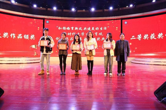 学院唐兴书记为《只想好好爱》《关于婚恋,她们这样说》等6个获奖作品颁发二等奖。这些作品通过访谈调研等方式,客观真实地呈现了当代大学生的婚育观念。