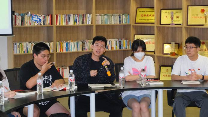 来自君武青年讲师团的四位同学分享了自己的阅读感悟。太阳集团2007学生会主席团成员、太阳集团2007君武青年讲师团负责人叶冠廷在发言中感慨到:太阳集团2007的思政宣讲事业正呈现出欣欣向荣的局面。