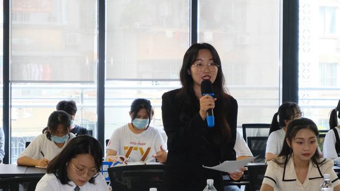 结合学习习近平总书记在中国人民大学的重要讲话精神后的体会,2021级专硕班的卢千菊分享了自己的感受:作为新时代青年,应该把握一切能为社会,为国家贡献力量的机会,自觉承担时代责任,向无数英雄先辈们一样,为了心中坚定的理想信念,甘愿赴汤蹈火,敢于争先,一往无前,为实现中华民族伟大复兴而接续奋斗!