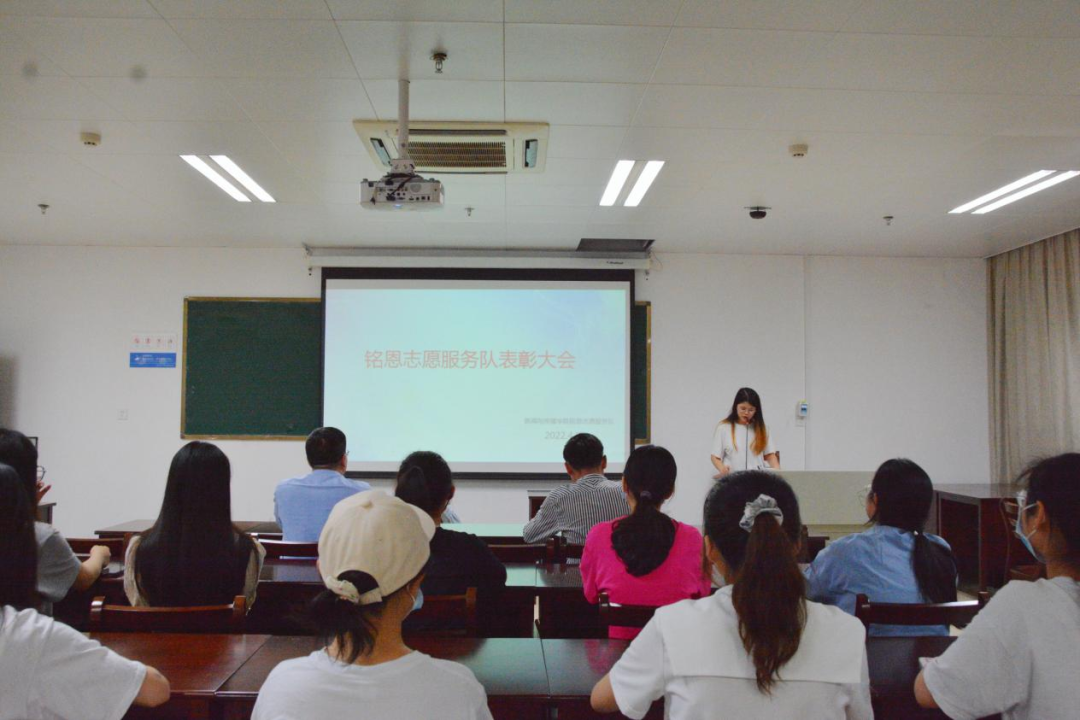 4月12日晚,太阳集团2007铭恩志愿服务队在学院510教室举行总结表彰大会,党委副书记银健老师、学工组辅导员王志标老师及铭恩志愿服务队全体成员参与了本次会议。
