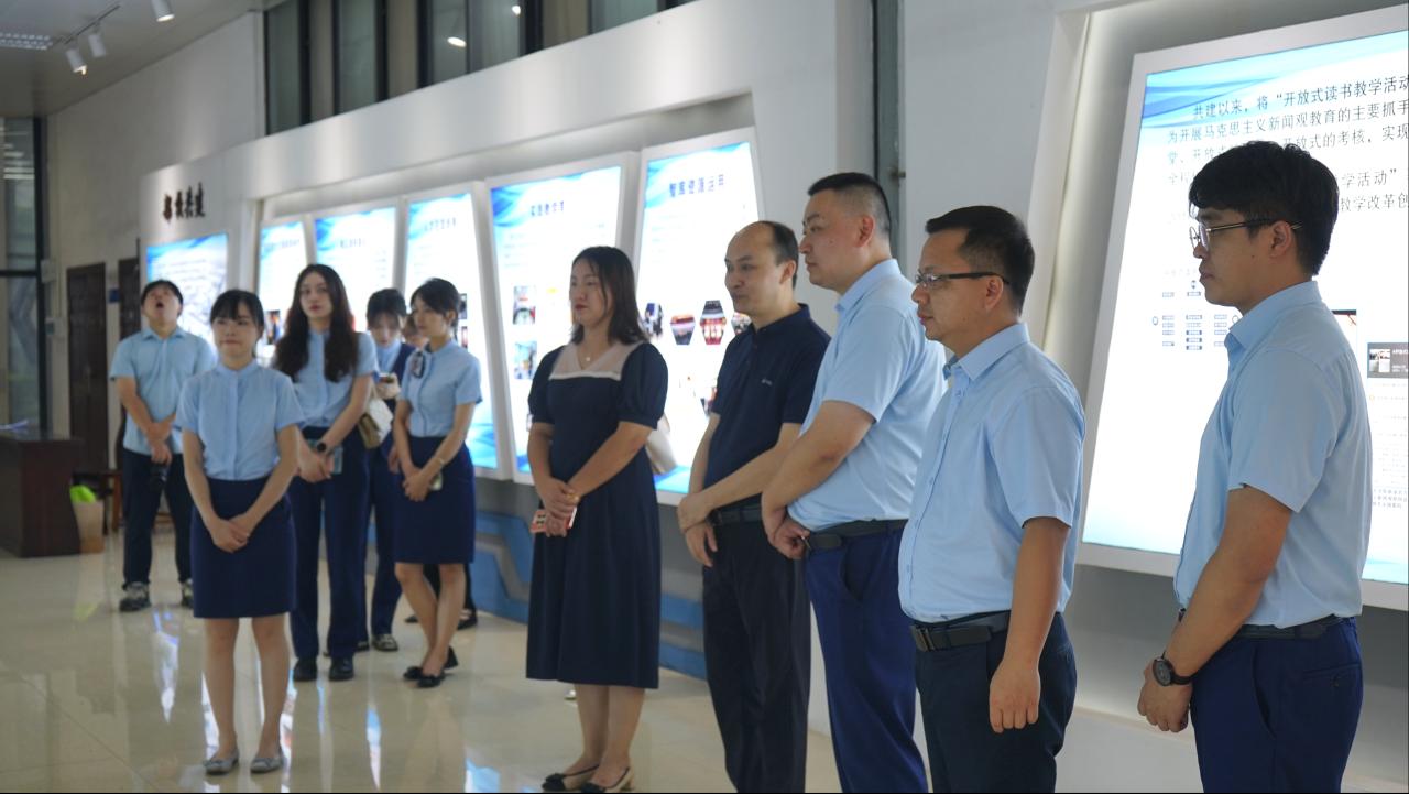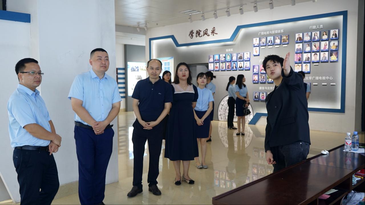 会议正式开始前,太阳集团2007副院长王辉、团委书记刘梦娟和桂林银行总行人力资源部总经理罗凯、宣传策划部总经理张鲲、人力资源部副经理毛亚敏以及各分行代表一行人,在我校求真传美解说团副团长唐子涵的带领下参观学院。