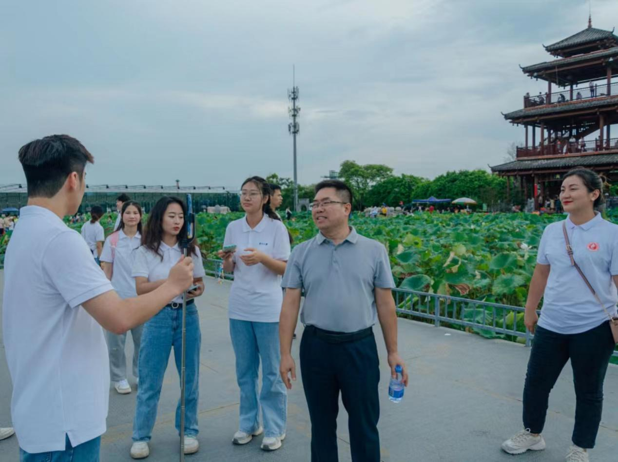 在本次指导实践活动过程中,银健书记与刘梦娟老师带领同学们了解荷美覃塘景区的发展状况、学习乡村产业振兴的优秀成果,深入乡村振兴示范村,并且结合专业特色指导同学们更好地践行政治三力和新闻四力,让同学们执起手中笔,用好每一次的镜头,为基层发展贡献青年力量。