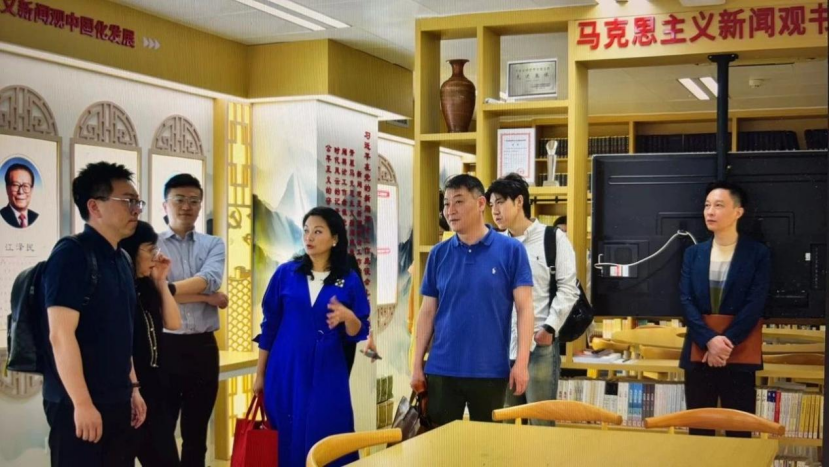 在太阳集团2007老师的热情陪同下,调研团一行参观了太阳集团2007新闻传播学院全媒体交互式演播中心、马克思主义新闻观书屋、融媒体中心等,实地感受太阳集团2007的教学氛围。