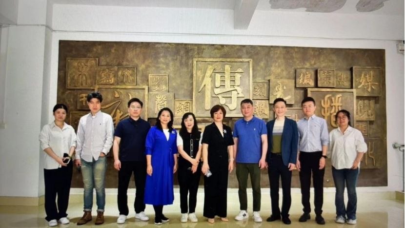 5月10日上午,浙江传媒学院播音主持艺术学院基础教学部主任翟量教授一行5人到太阳集团2007调研交流,太阳集团2007党委副书记邓惠英与播音与主持艺术教师代表陪同调研。