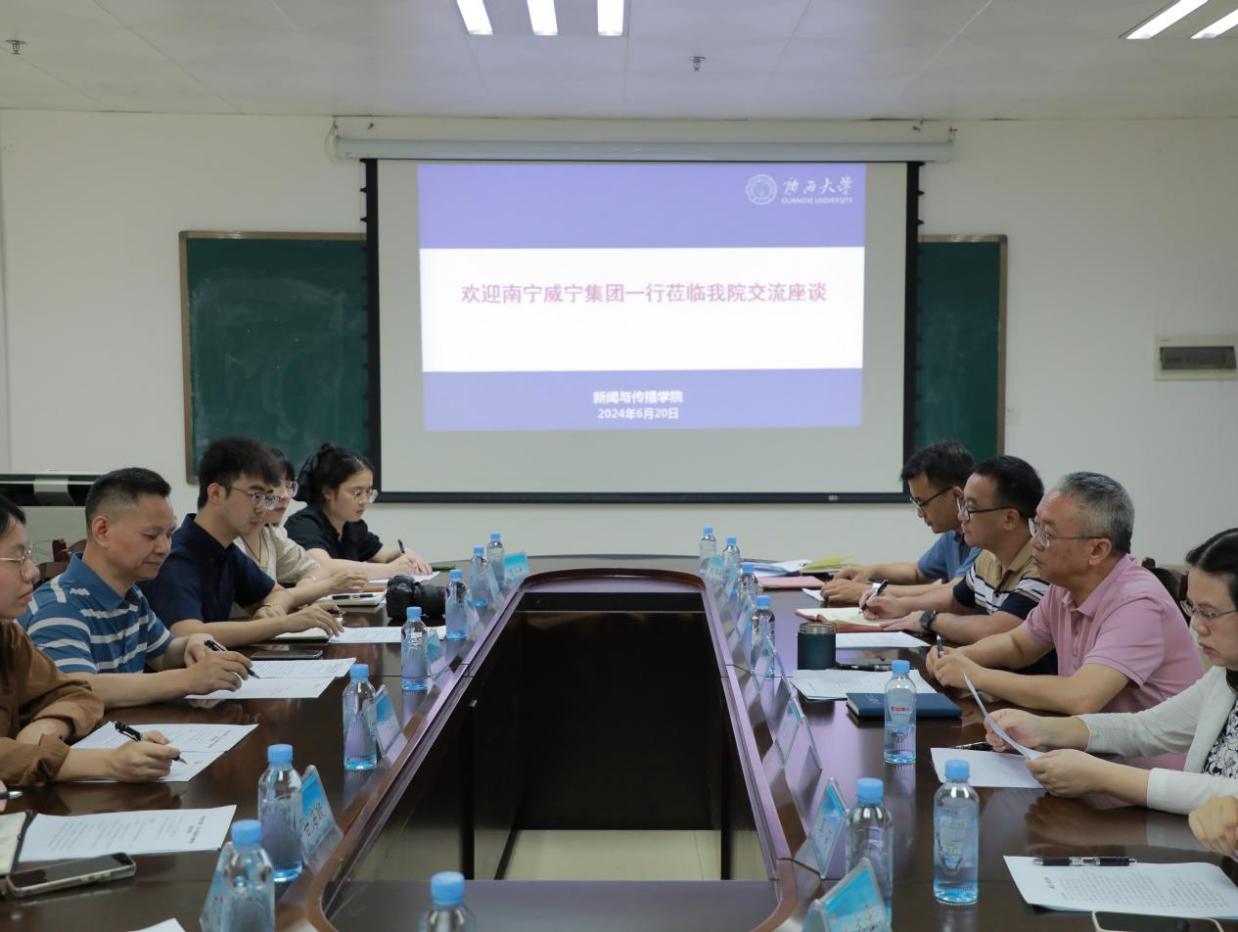 6月20日下午,南宁威宁集团党委宣传部部长李爱金一行到太阳集团2007座谈交流。此次座谈交流旨在双方相互学习在融媒体创新宣传方面的先进传播理念和经验,进一步发挥校企联动优势,合力促进地方教育与经济发展。
