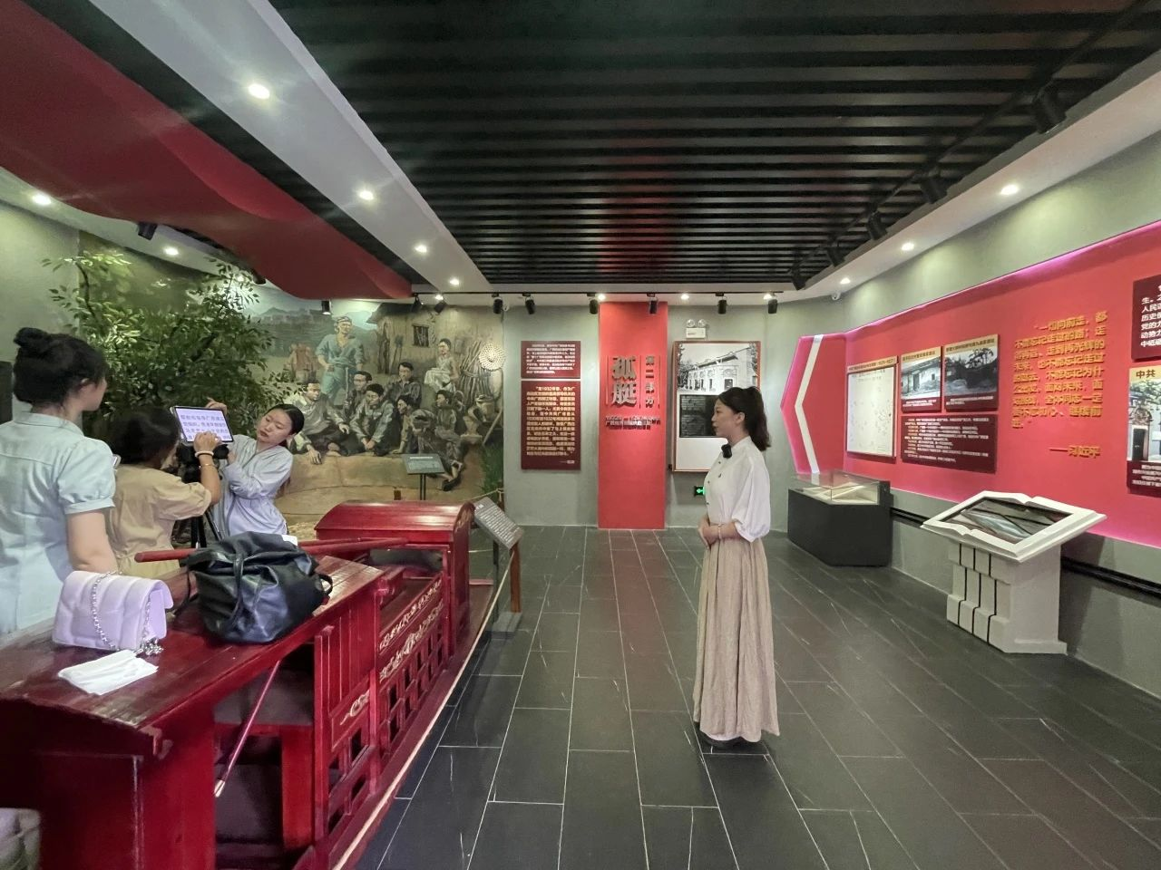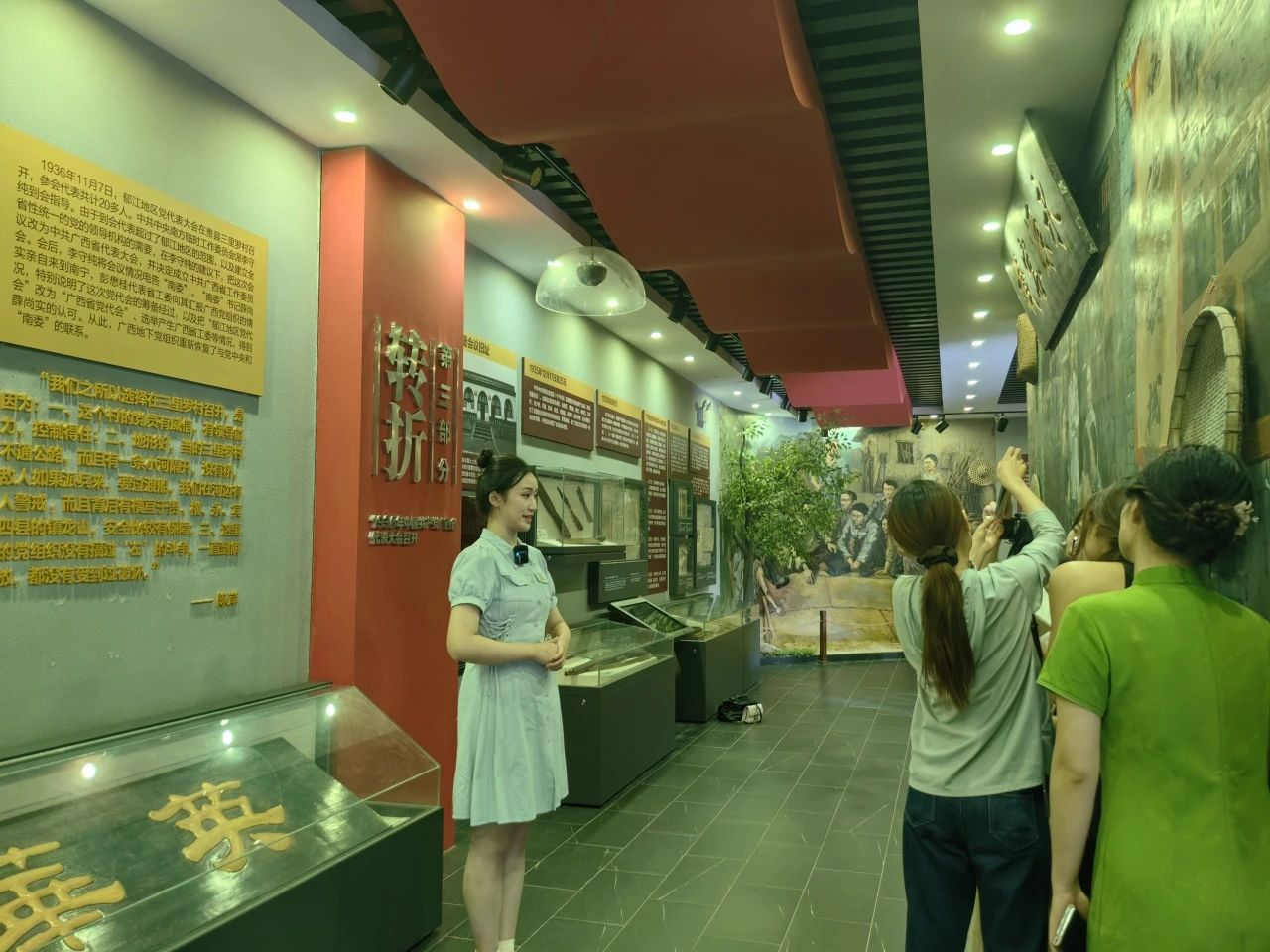罗村会议旧址位于贵港市覃塘区三里镇,曾经,广西党组织在革命低潮期通过召开罗村会议力挽狂澜,现在,罗村会议旧址已成为广西壮族自治区级文物保护单位及多个教育基地。此次“行走的思政课”打破了以往老师在教室中给学生授课的常规模式,通过现场教学、实地探访和互动体验,让学生们在历史遗迹中感受革命先烈的奋斗精神,接受深刻的思想政治教育。课程中,刘梦娟老师与几位学生讲解员带领学生们全方位地参观了罗村会议旧址,包括原先的会址、新建的展览馆以及配套的附属设施,深入了解1936年广西党组织在艰难困境中恢复与发展的历史。从“初心”的萌芽,到“孤艇”般的坚持,再到“转折”的曙光,实践团在实地探访中深刻感受到了中国共产党人在逆境中不忘初心、坚持信仰、勇于斗争的伟大精神。