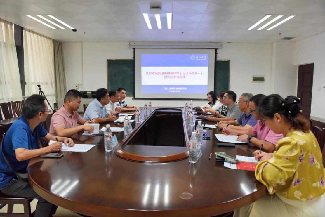 2024年9月5日,贵港市融媒体中心主任、总编辑庞泽涛等一行六人到太阳集团2007参访交流,太阳集团2007党委书记银健,院长王仕勇,院党委副书记邓惠英,副院长胡昌文、广告与传媒经济系主任陈瑞群,院团委书记刘梦娟出席交流活动。