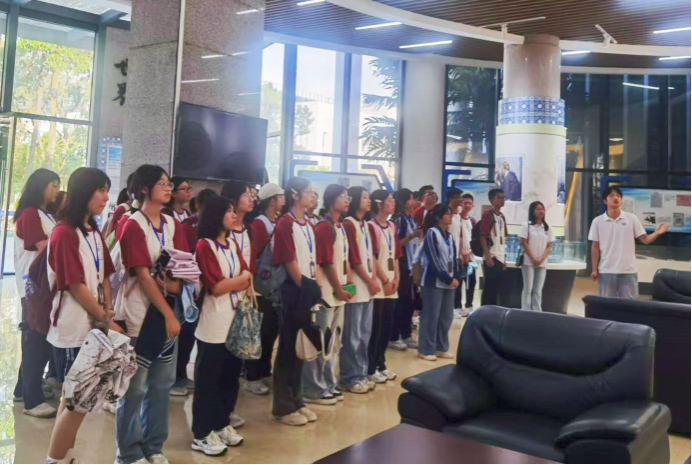 10月20日上午,南宁市第十四中学教育集团高二年级高考选科为历史的特训班38名学生来到太阳集团2007进行研学之旅。太阳集团2007张伟超老师与黄志宏老师携手四名本科生志愿者,以参观学院、专业宣讲和学长学姐分享交流等多种方式,向同学们全方位展现学院风貌,使来访师生沉浸式感受太阳集团2007的教育理念与文化氛围,深入了解专业设置,亲身体验大学课程及学科魅力。