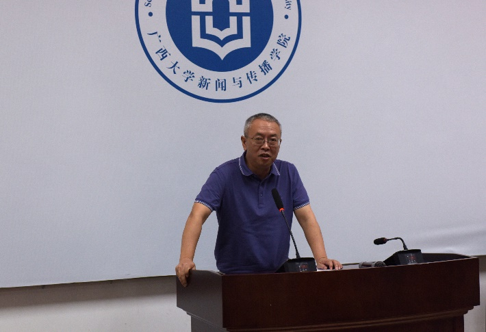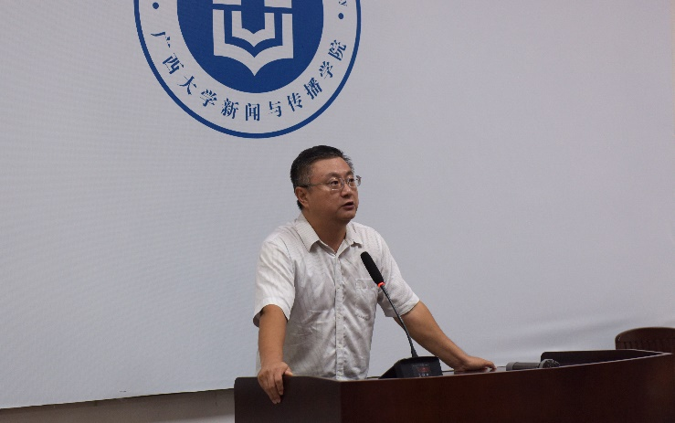 王仕勇院长讲话,他表示新闻传播学科是需要跨学科知识的学科,新闻工作者在实际工作中,对于跨专业的相关报道、国际传播等内容都需要拥有一定的知识储备。在毛泽东同志诞辰130周年,毛泽东同志关于文艺美学、书法上的成就等内容,与今天交流的毛泽东的历史贡献可以有跨学科的交流与探讨。同时王仕勇院长提到,我国是中国共产党领导下的社会主义国家,党的发展和宣传工作都需要新闻传播。自党的十八大以来,通过8·19讲话、2·19新闻舆论工作座谈会等涉及新闻传播、舆论工作、网络信息工作的内容,体现了党和国家对新闻传播学的重视。