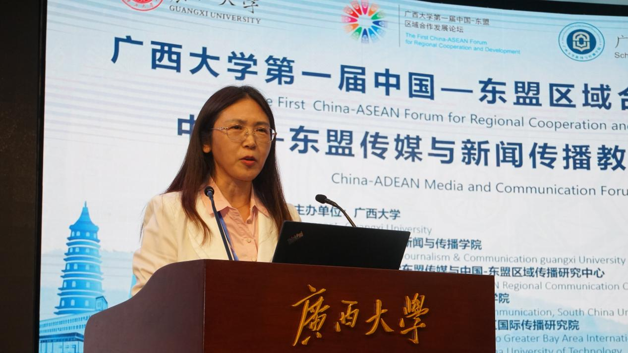 老挝国立大学语言学院大众传播系副主任苏欣作题为《如何应对新媒体给新闻与传播教育带来的挑战:老挝国立大学大众传播专业的改革实践》的报告。她介绍了老挝国立大学大众传播系的发展历程、课程设置情况及教学成果。针对新媒体平台兴起对人才培养产生的影响,她认为高校有必要调整课程安排和教学方法,让学生掌握必要的新闻传播技能和专业知识,以帮助学生适应不断变化的新媒体环境。