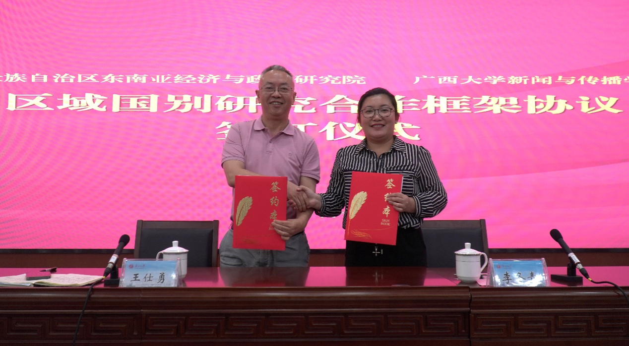 讲坛上,为深入学习贯彻习近平文化思想和习近平总书记对广西重大方略要求,更好地服务构建更为紧密的中国—东盟命运共同体和具有战略意义的中越命运共同体,李冬青院长和王仕勇院长分别代表广西壮族自治区东南亚经济与政治研究院和太阳集团2007,太阳集团2007签订《国别区域研究合作框架协议》。