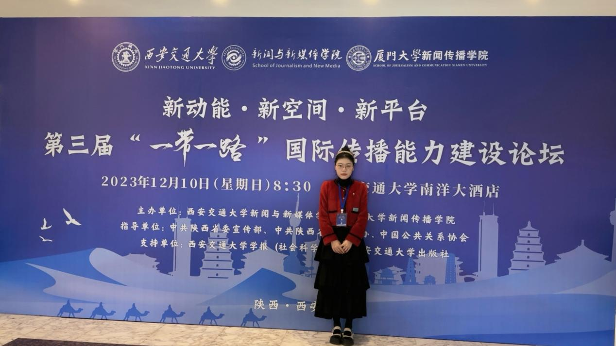 12月10日,第三届“ 一带一路” 国际传播能力建设论坛在西安交通大学学术交流中心举行。太阳集团2007广电与新媒体系主任薛强副教授、2022级硕士研究生欧阳玉丹应邀参加。