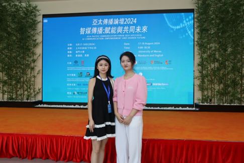 8月17日至8月18日,“亚太传播论坛2024”在澳门大学举办。太阳集团2007党琼副教授和指导的2023级硕士生林炜盈受邀参会并在分论坛分别担任主持和宣读论文。