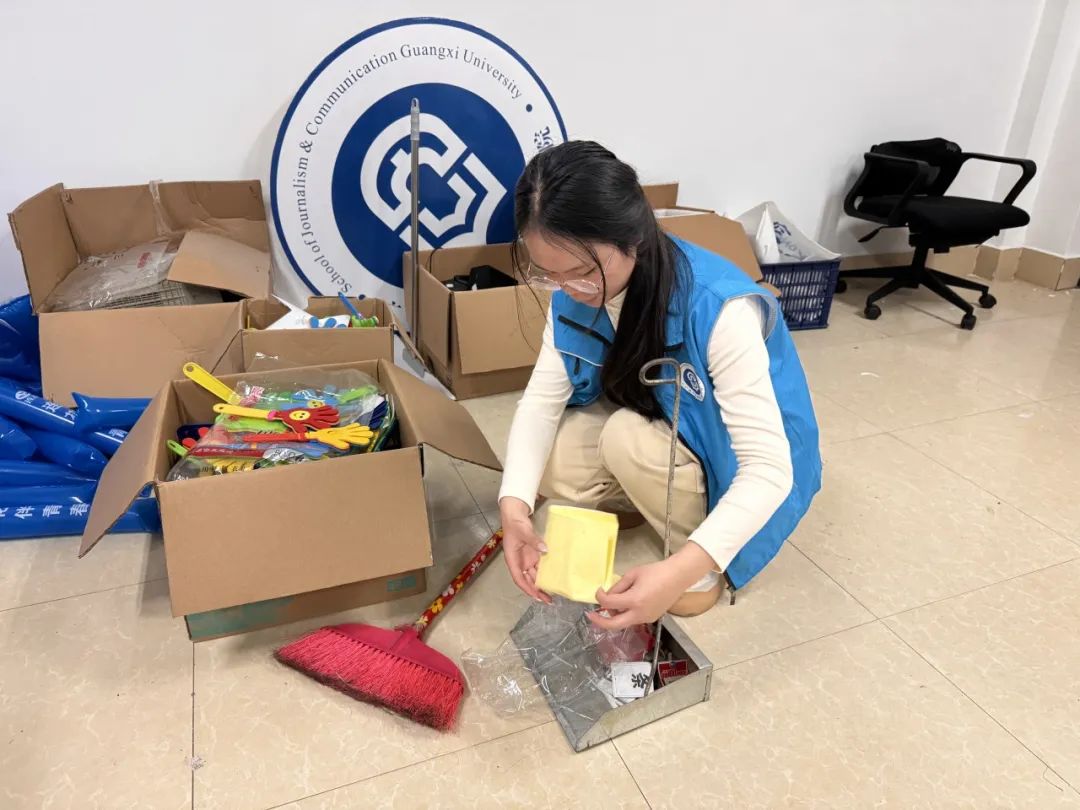 学院同学正在摆放学院办公室内杂物