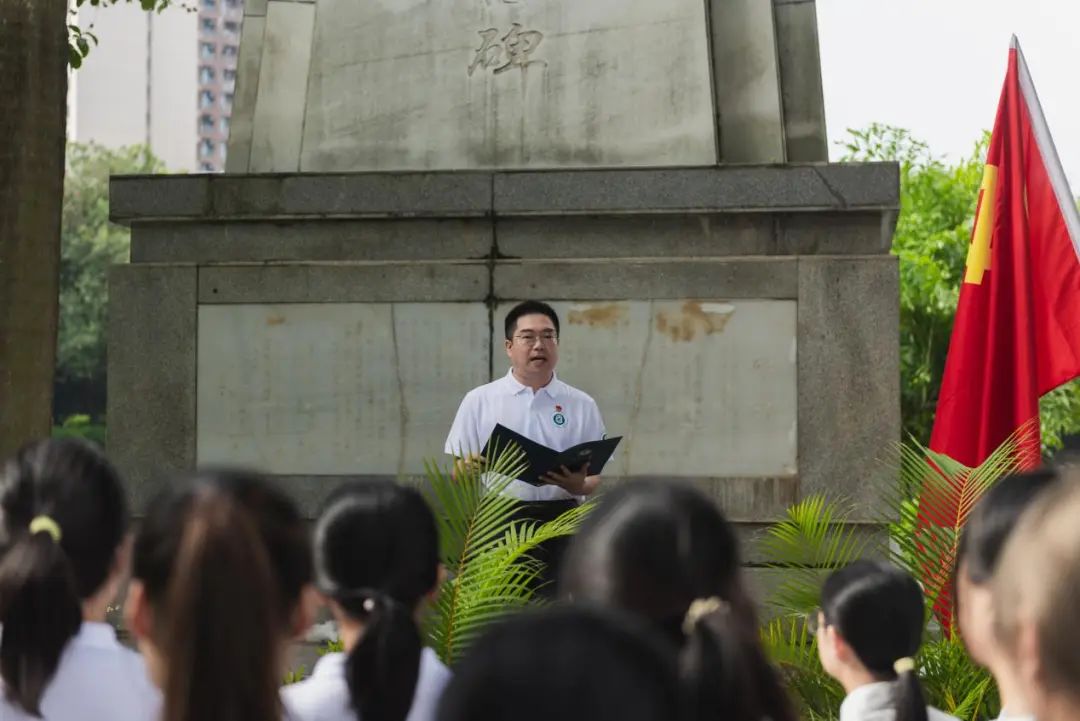 时代呼唤担当,精神激励前行。在这个共同怀念先烈、追忆他们光辉事迹的时刻,全体成员热血澎湃地朗诵着《英雄祭》,表达着对革命烈士的颂歌。字字句句间仿佛看到了英雄们的身影,感受到了他们的勇敢和坚定的信念。在生死之间,他们选择了奔赴国难,他们用炮火呼唤和平,让五星红旗飘扬在祖国的上方。