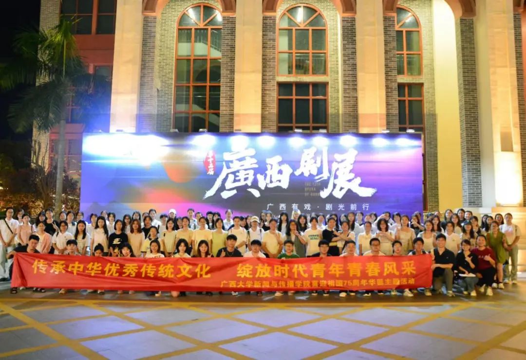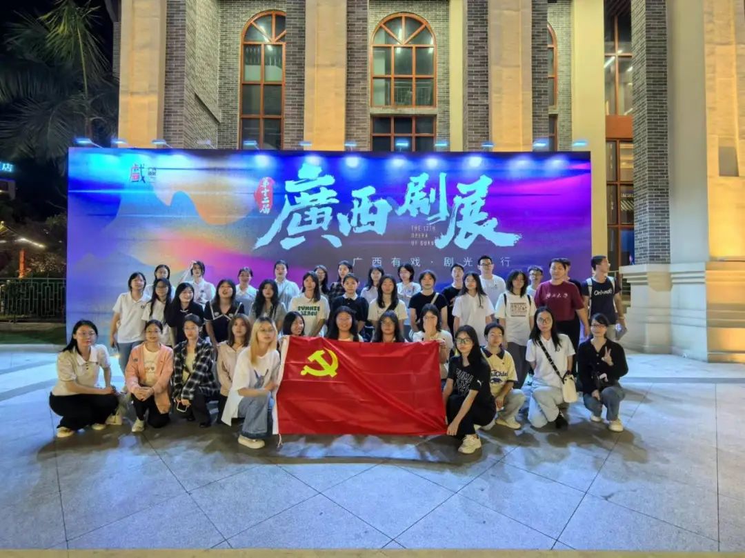 9月28号晚,在新中国75周年华诞来临之际,太阳集团2007以一场别开生面的广西剧展闭幕式专场演出——彩调剧《木匠哥的钢琴梦》为祖国母亲的生日献礼。团委书记刘梦娟、辅导员胡新梅两位老师带领太阳集团2007学生党员、主要学生干部及学生代表前往广西民族剧场观看演出。
