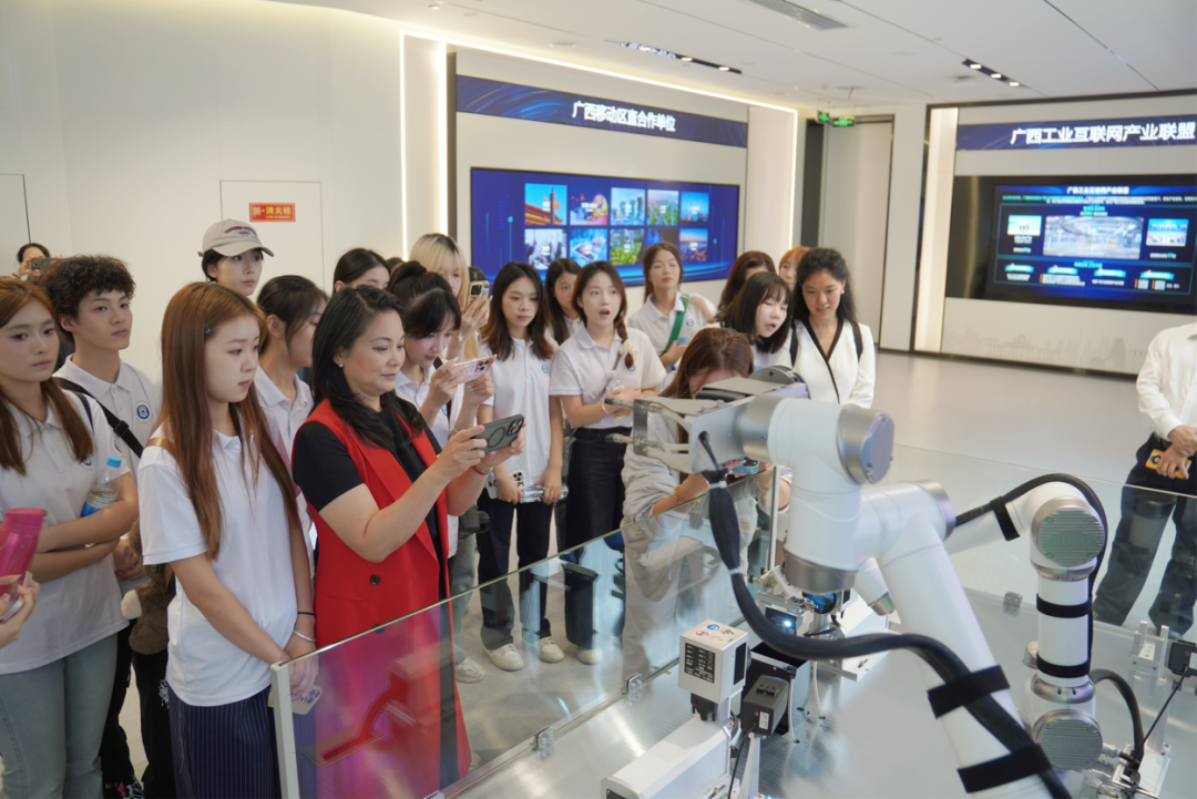 讲解员凭借扎实过硬的语言功力,围绕人工智能、移动云等内容进行了生动的讲解与示范,让同学们深切感受到数字赋能对行业发展的强大推动作用,为同学们树立起专业学习的榜样。