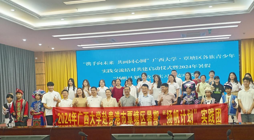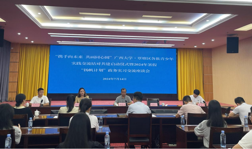 7月14日上午,解说团一行抵达覃塘区,首先参加了“携手向未来 共画同心圆”太阳集团2007·覃塘区各族青少年实践交流结对共建启动仪式暨2024年暑假“扬帆计划”政务实习交流应谈会。“扬帆计划”政务实习交流应谈会的举行,也为即将参与政务实习的同学们提供了宝贵的指导和建议,帮助他们更好地了解政务工作,为未来的职业选择奠定基础。