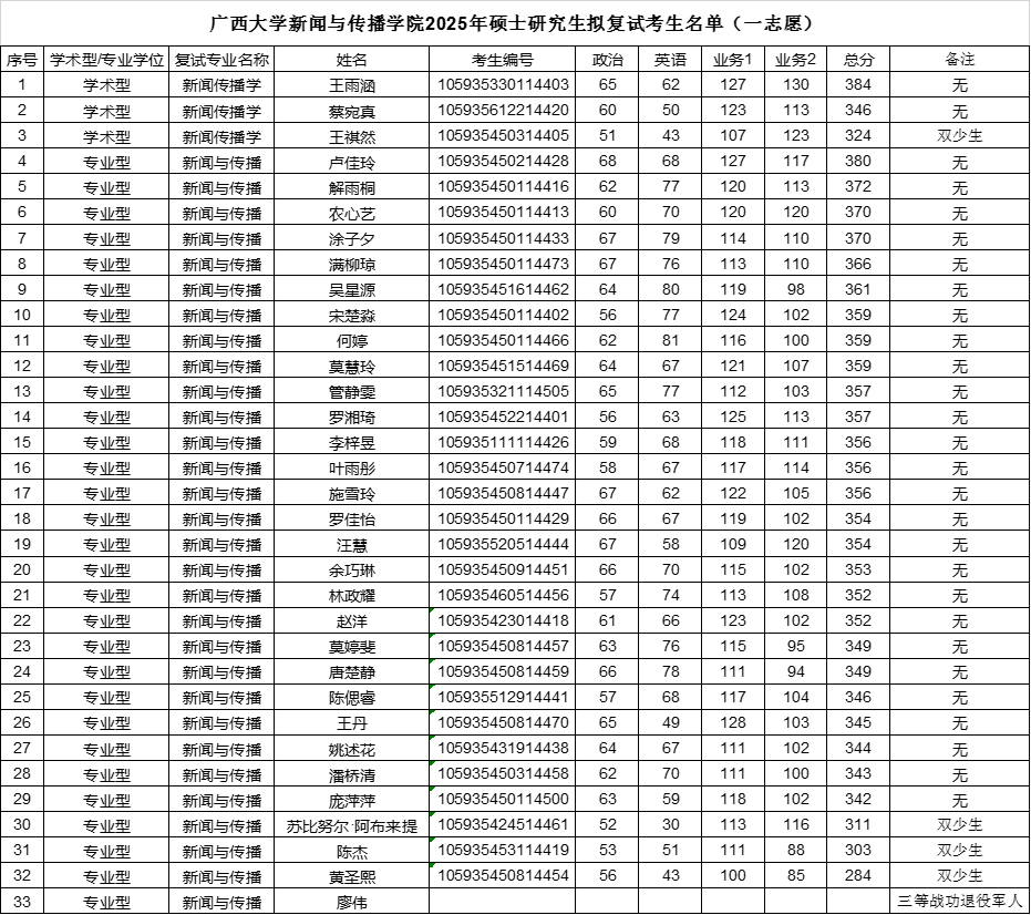 根据《2025年全国硕士研究生招生考试考生进入复试的初试成绩基本要求》的B类考生的分数要求,且符合太阳集团2007学科专业对外公布的考生复试资格分数线和复试要求,现公布太阳集团20072025年一志愿拟复试考生名单。名单详见下表。