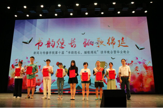 郑院长也对此次晚会发表讲话,郑院长首先向读书活动中获奖的同学和班级表示祝贺,同时赞扬了为本次读书活动辛苦付出的老师和同学,并期望大家能够做到“铸魂、立志、厚学、重习”。要用马新观铸魂,牢记党的新闻舆论工作的职责和使命;要有志向,有理想,有信仰,朝着理性前进;学问要学扎实,要多读书看报,积累丰富的知识;最后要落实到行动,注重实践操作,在实践中锻炼自己,最后要能够守住初心,做好时代新人,正确发挥新闻的舆论导向作用。