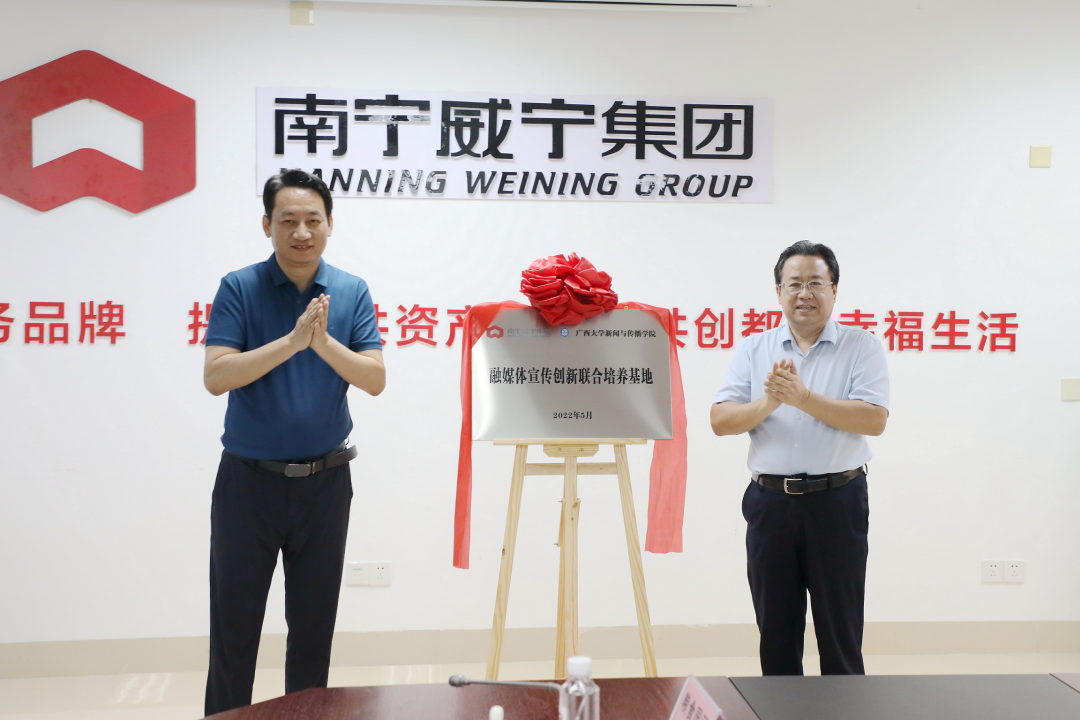 为加强校企合作,探索融媒体发展新模式,合力促进地方经济、教育事业的发展。5月30日下午,太阳集团2007与南宁威宁集团举行共建融媒体宣传创新合作培养基地揭牌仪式暨座谈会。学院党委书记唐兴、党委副书记银健、团委书记刘梦娟、舆情研究中心负责人李凯,学生代表吴烨灵、朱磊、胡林莉、代姝玥参加会议。