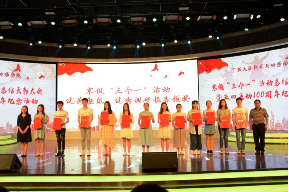 此外,本次活动还对在寒假“三个一”活动中表现优秀的班级、撰写优秀调研报告的个人进行了表彰,左向蕾书记、郑保卫院长和唐兴书记分别为获奖代表颁发了获奖证书。