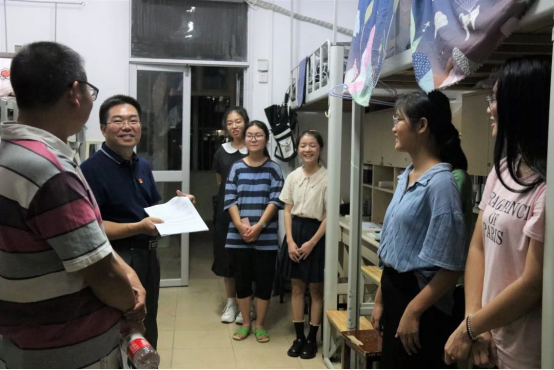 9月8日晚,太阳集团2007常务副院长刘洪、党委副书记银健、副院长王辉、团委书记雷圆媛以及太阳集团2007新生班主任分批到西11栋、西9栋、西21栋、西23栋和专家二期C座看望2019级新生。院领导对新生的到来表示了热烈欢迎,并代表学院传达对新生的问候与关心。