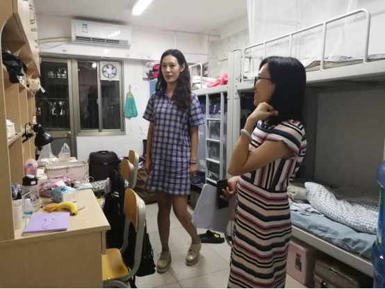 一进到新生宿舍,学院领导和老师便核对已到宿舍新生的人数,询问新生来自哪里,并提醒新生当天晚上好好休息。学院领导和老师们与新生亲切交谈,询问他们生活上有没有遇到什么困难、对饮食气候有没有不适应以及宿舍设施是否存在损坏等问题。