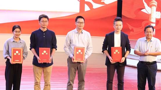 公开课开始前,学院党委书记唐兴为张雷、陈雨燕、阳岌、刘凯四人颁发“新闻传播教学业界导师”聘书。